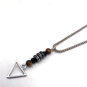 2018 New Fashion Men Women Inverted Triangle Pendant Neckalce Vintage Design Chain Necklace Stone Bead Jewelry Gift