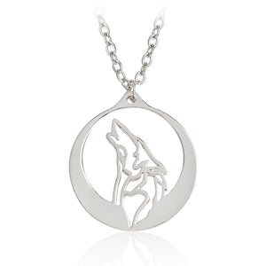 Howling Wolf With Silver Moon Pendant Necklace Gold Ethnic Animal Necklaces Men Boy Friend Simple Fashion Jewelry
