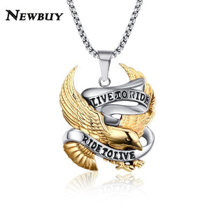 Stainless Steel Eagle Pendant Necklace For Men LIVE TO RIDE Link Chain Necklace Male Punk Jewelry Drops USA