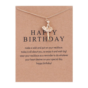 New Golden Plated Happy Birthd Ballet Girl Alloy Clavicle Bones Pendant Short Necklace