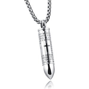 Punk Bullet Pendant Necklaces For Men Cross & Bible Design Box Link Chain 3 Colors God Bless You Personality Unscrewed Gift