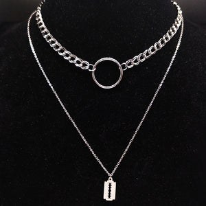 2018 Fashion Blade Stainless Steel Necklaces for Women Jewelry Double Layer Silver Color Necklaces gotico N17853