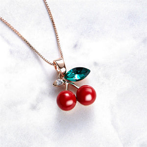 2018 New Fashion Necklace For Women Austrian Crystal Cherry Pendant Necklace for Girl's Jewelry Gift