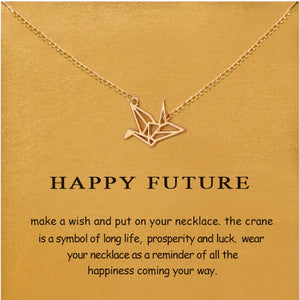 Simple Paper Crane Necklace Women Origami Pigeon Pendant Clavicle Chain Statement Choker Necklaces Happy Future Gift Card