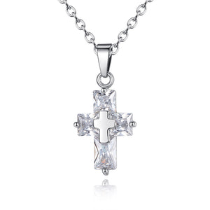 Fashion Hot Rose Gold Color Copper Crystal Women Necklace 3 Colors Cross Shaped Pendant Necklace For Women Girl Gift Religious