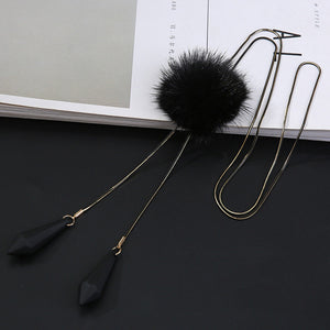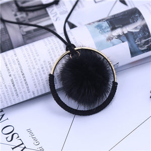 New Fashion All-match Sweater Pom Pom Long Pendant Necklaces For Women Elegant Female Pompon Fur Necklace N1096