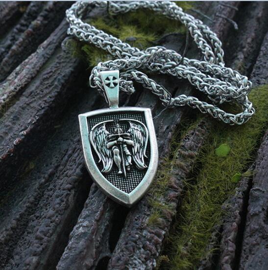 1pcs men necklace Archangel St.Michael Protect Me Saint Shield Protection pendant jewelry
