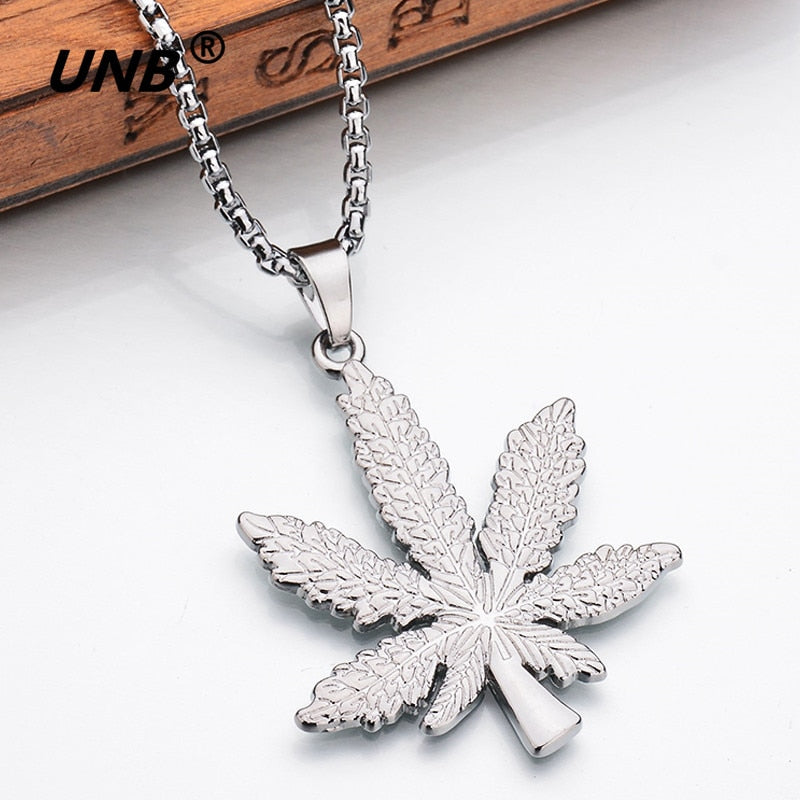 UNB 2017 New Gold Silver Plated Cannabiss Small Weed Herb Charm Necklace Maple Leaf Pendant Necklace Hop Jewelry Wholesale