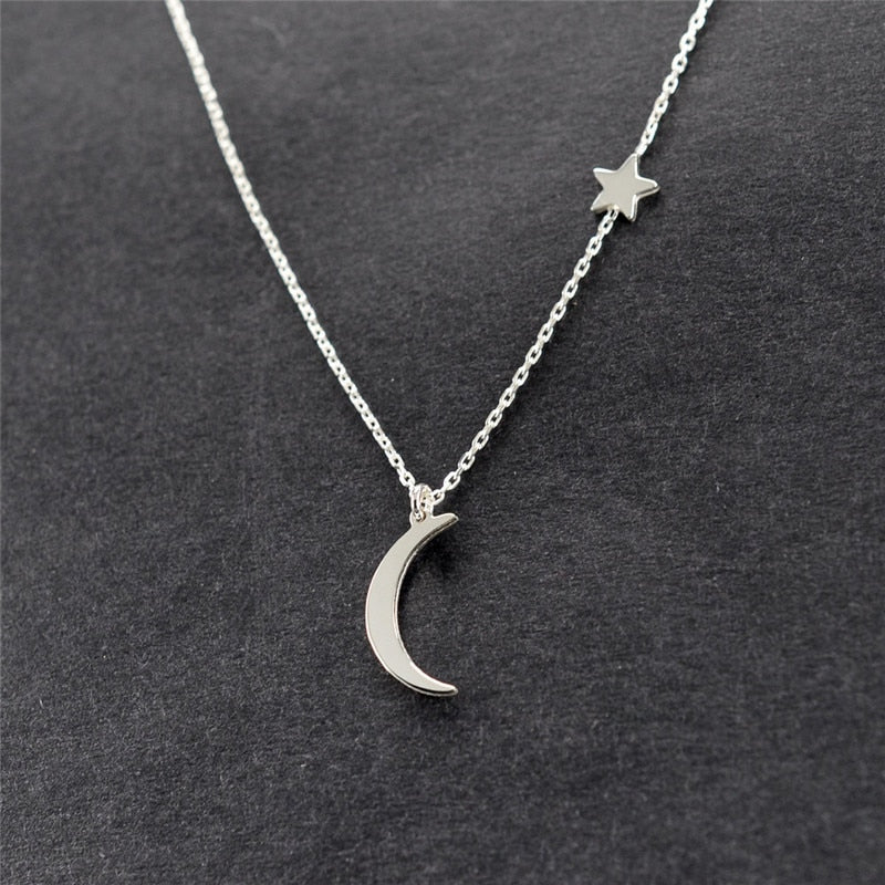 Simple Star & Moon Pendant Necklace For Women New Bijoux Maxi Statement Necklaces Collier Fashion Jewelry