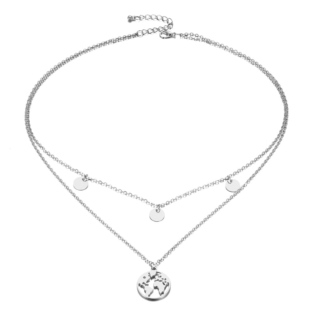 World Map Pendant Necklace for Women Silver Gold Metal Dainty Globe Earth Layered Necklace Globetrotter Collares