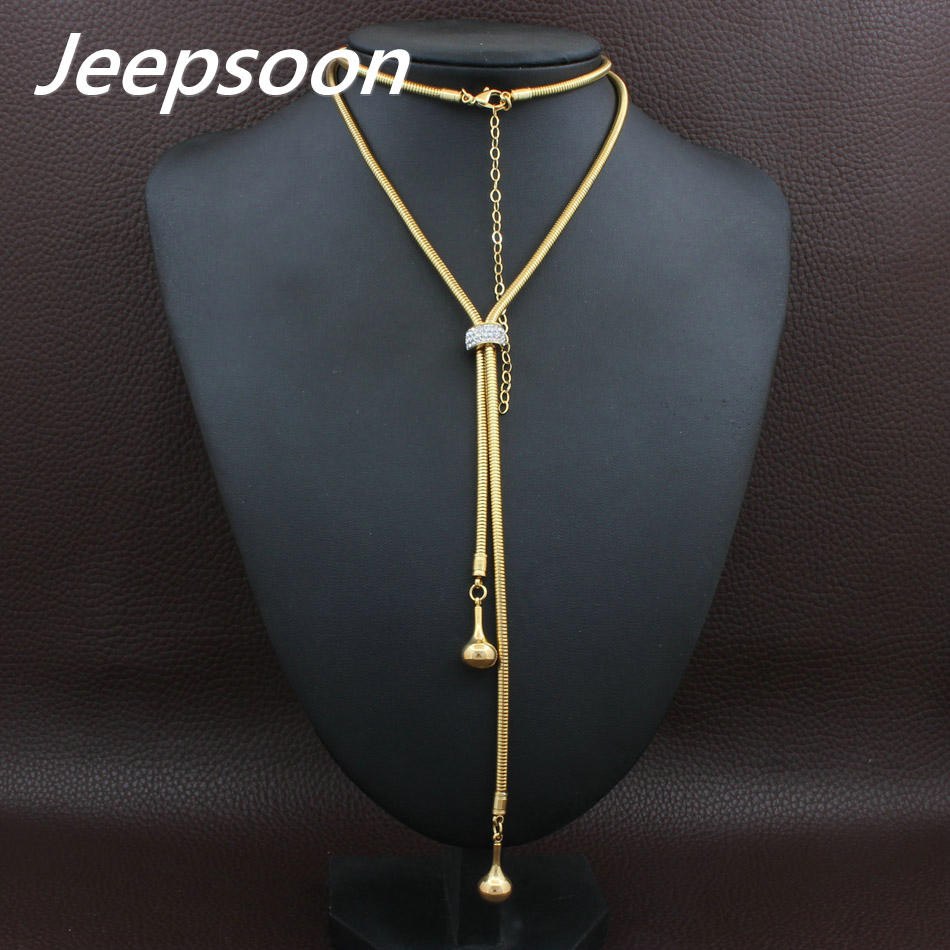 Fashion Stainless Steel Jewelry For Woman Simulated Pear Long Chain Necklace High Quality Rhinestone NEIGAEBJ