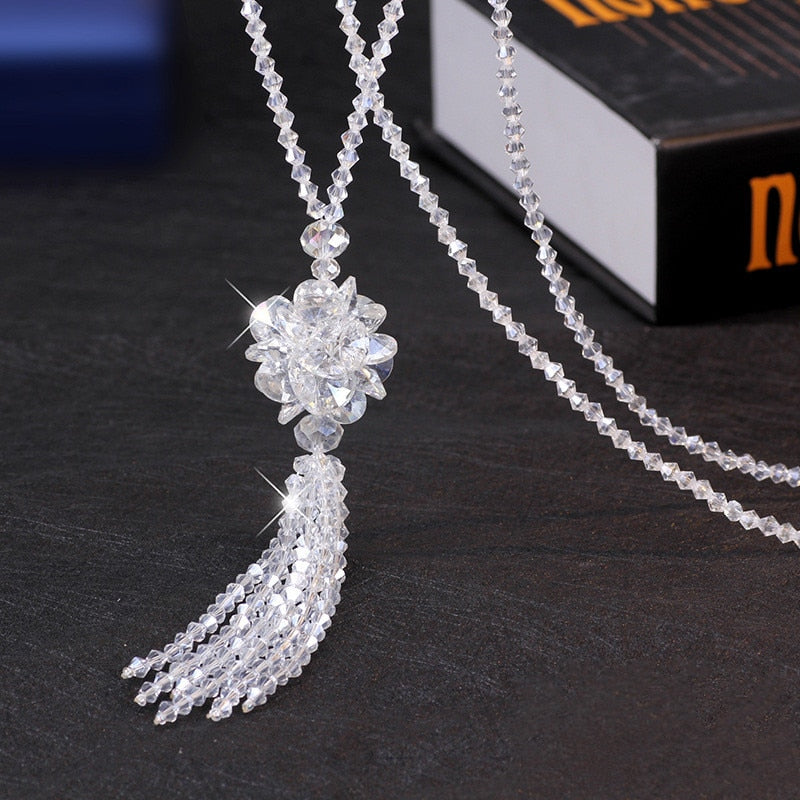 Korean Crystal Long Necklace Women Fashion Sweater Chain 2018 New Beads Tassel Bijoux Shiny Red Party Jewelry Lady