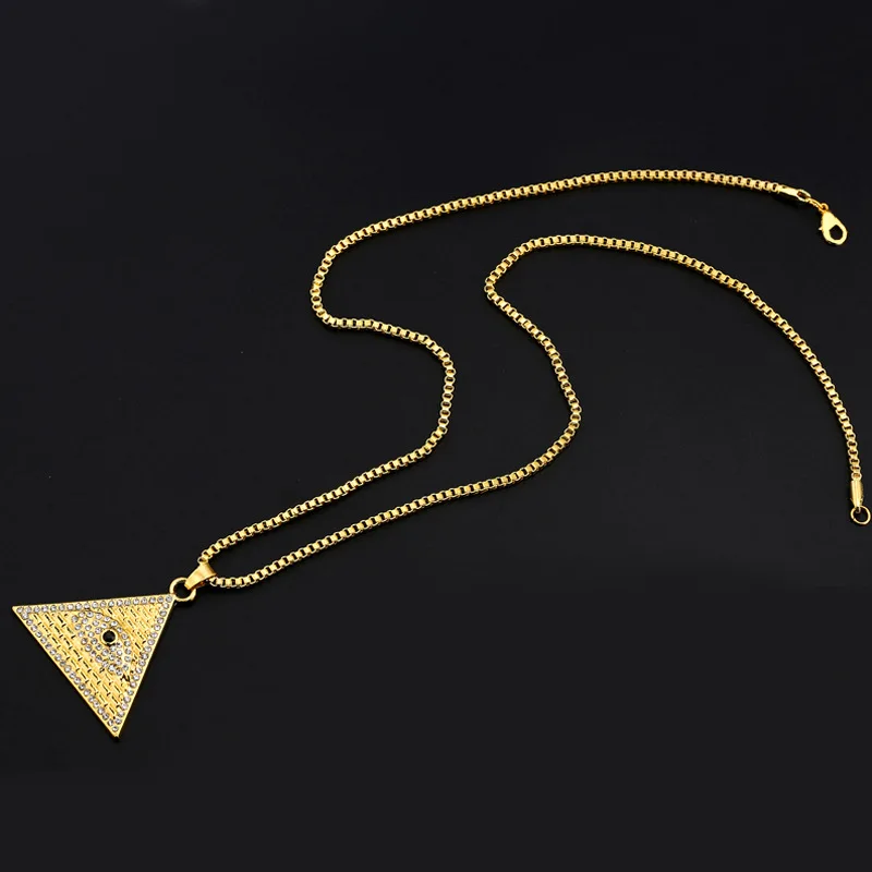 Hop Bling Ied Out Gold Color Triangle Egypt Pyramid Pendants Necklaces Illuminati Eye Men Rock Jewelry with 60cm Box Chain