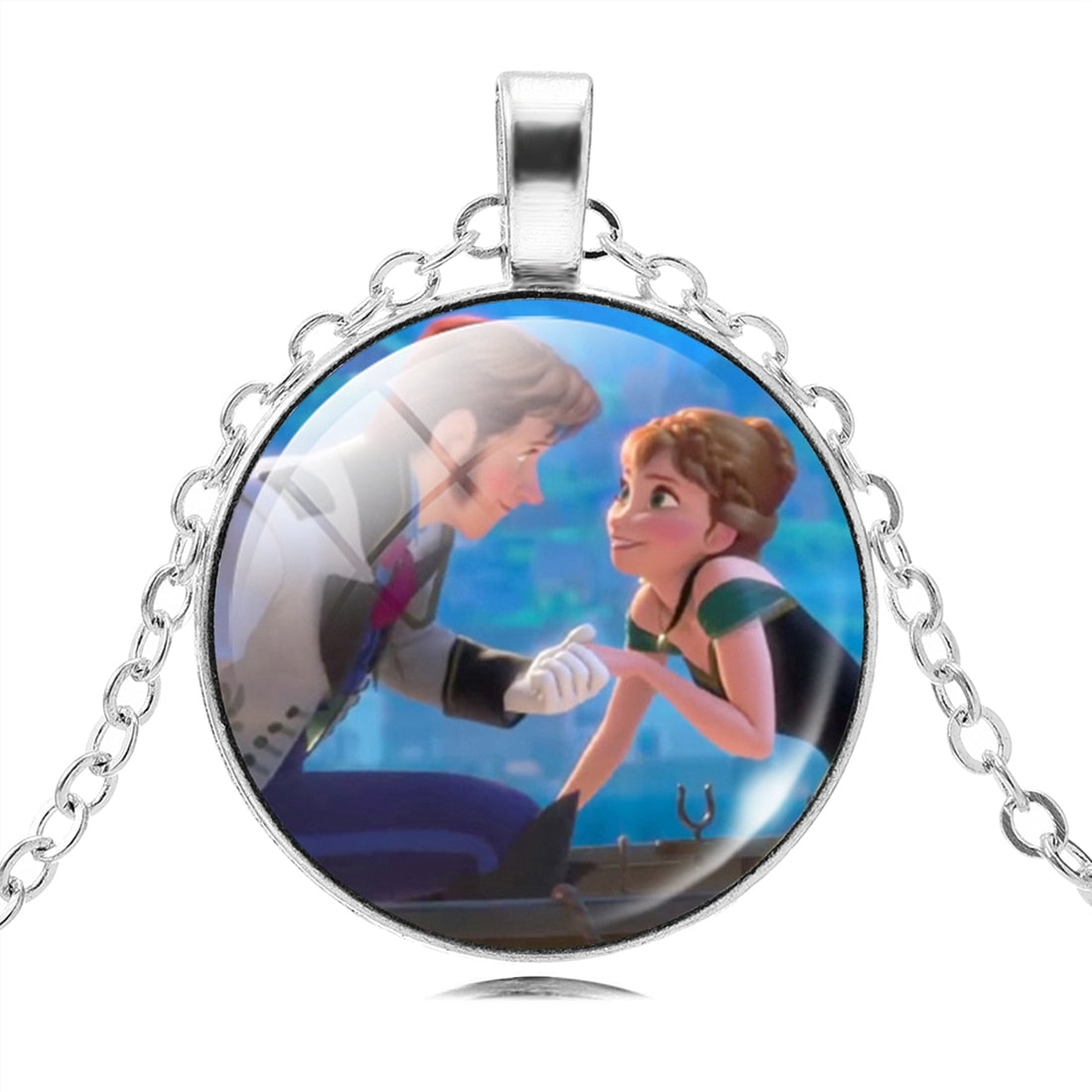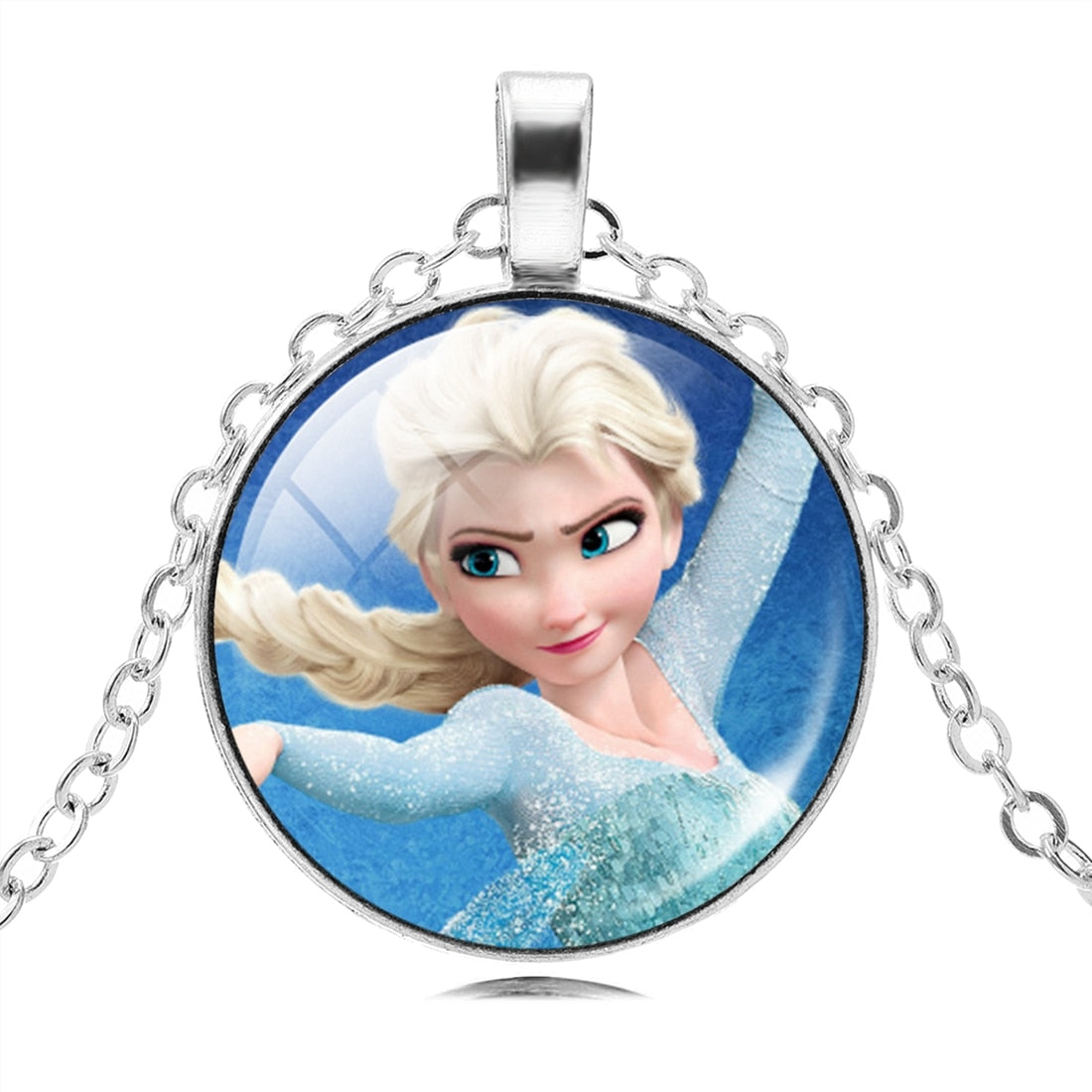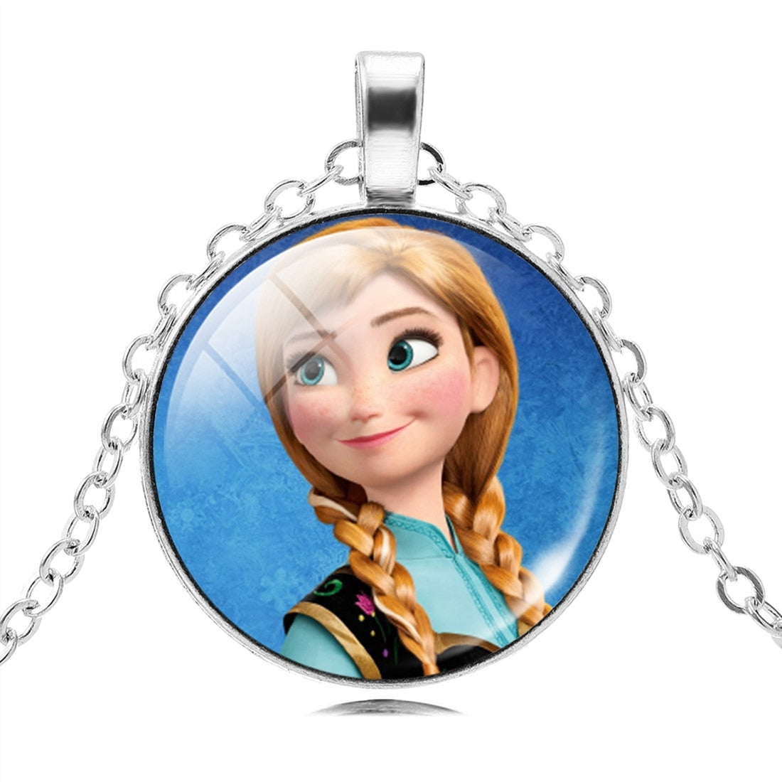 The Long Chain Jewelry Necklace Crystal Cabochon Princess Elsa Anna Pendant Necklace Girl Choker Silver Color