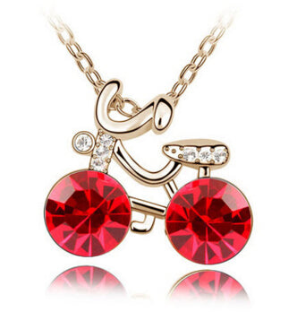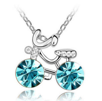 New Fashion Design Crystal bicycle Necklace Pendant Bike made with Czech clear Round CZ AAA+ Chain Silver Jewelry For Women Girl