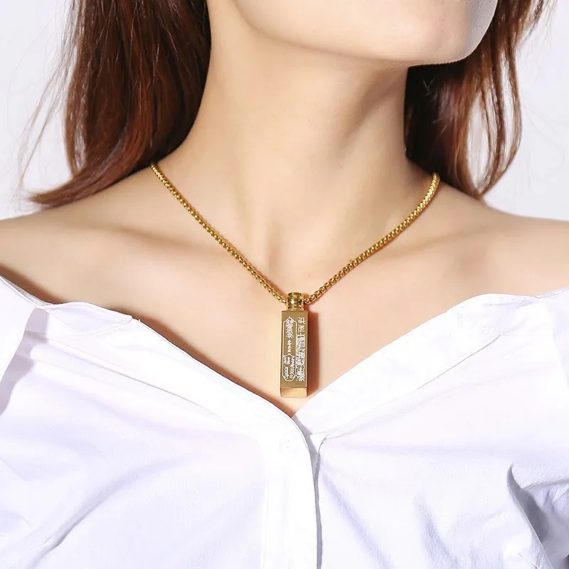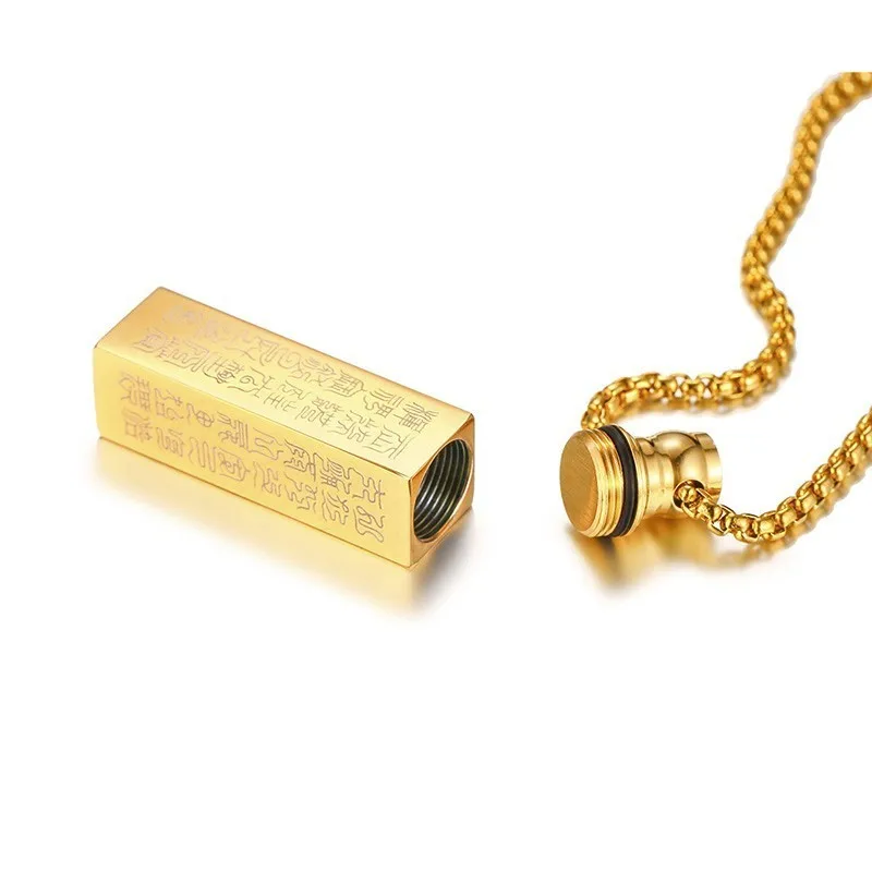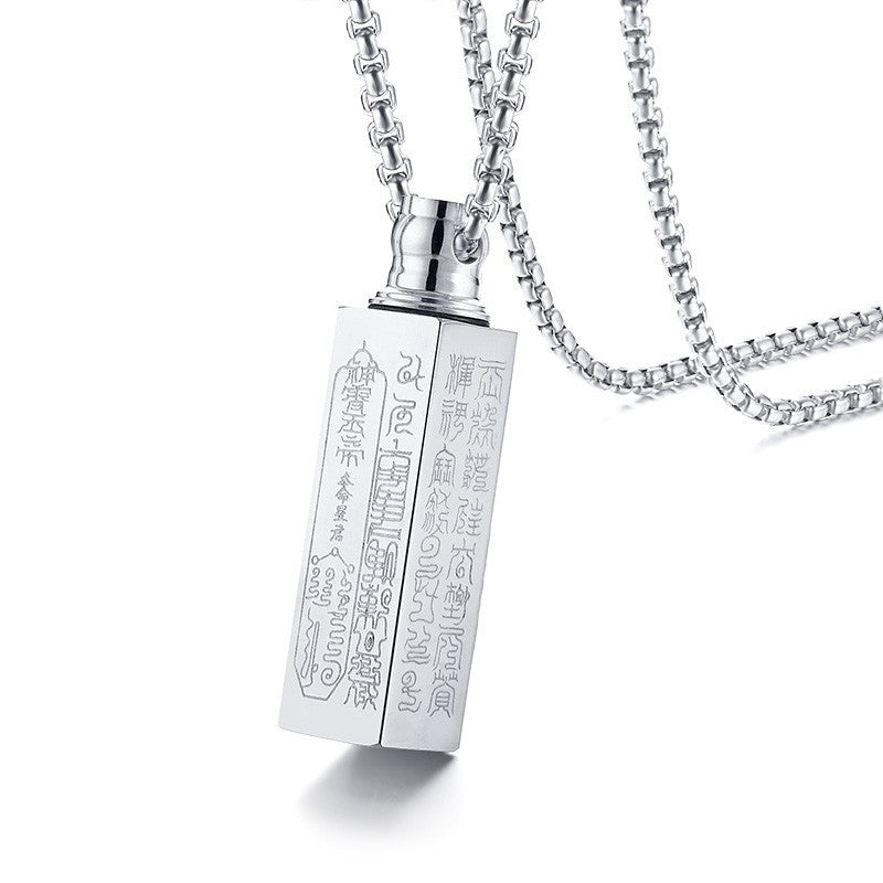 Hollow Tube Taoism Prayer Scripture Pendant for Men Women Stainless Steel Urn Cremation Openable Necklace Male Punk Jewlery