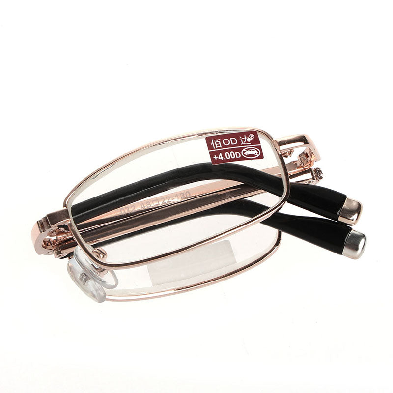 1PC Mini Foldable Reading Glasses Metal Full Frame Case Eyeglass +1.00 to +4.00 gafas de sol очки солнечные женские