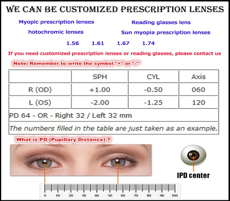 Can be customized     : Progressive multifocal prescription lens photochromic lens