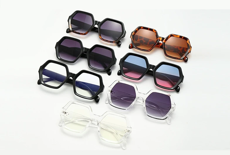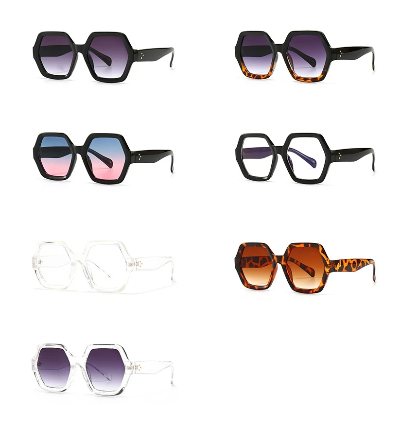 46539 Retro Rivet Big Frame Sunglasses Men Women Polygon Shades Uv400 Vintage Glasses