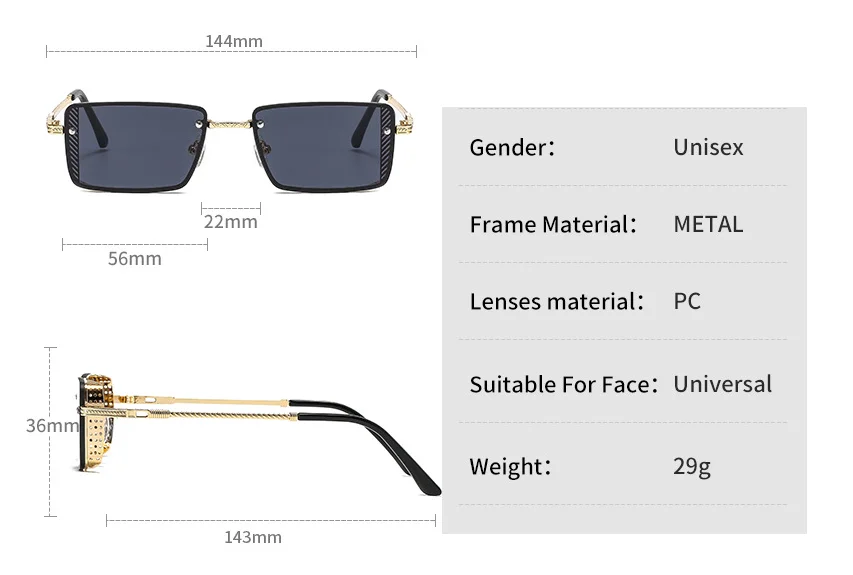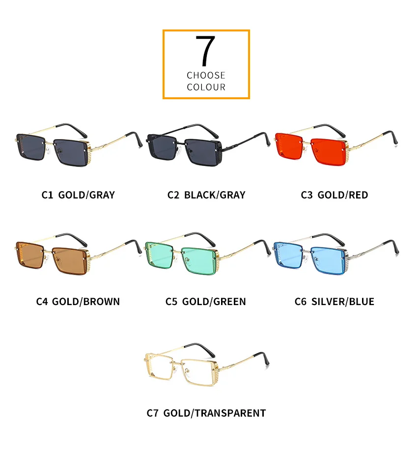 46696 Steam Punk Metal Frame Sunglasses Men Women Square Shades UV400 Vintage Glasses