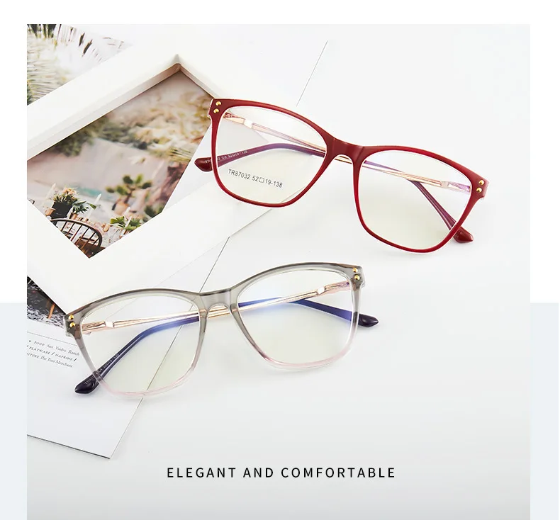 46947 Cat Eye Anti Blue Light Optical Glasses Frames Rivet Men Women TR90 Computer Eyeglasses