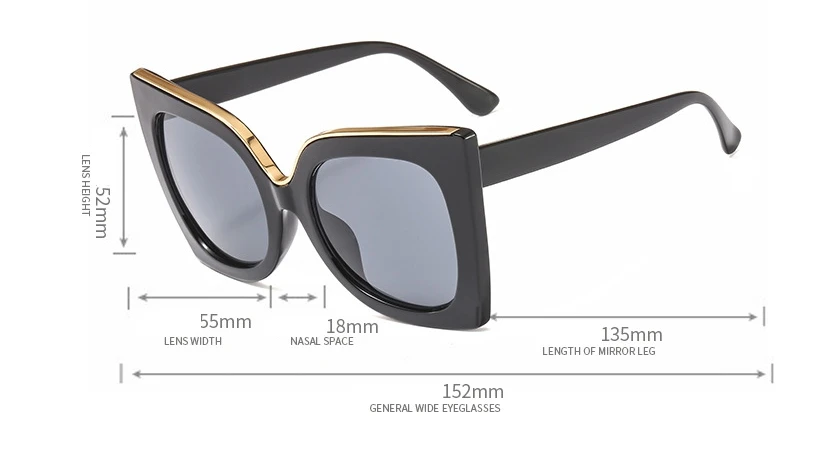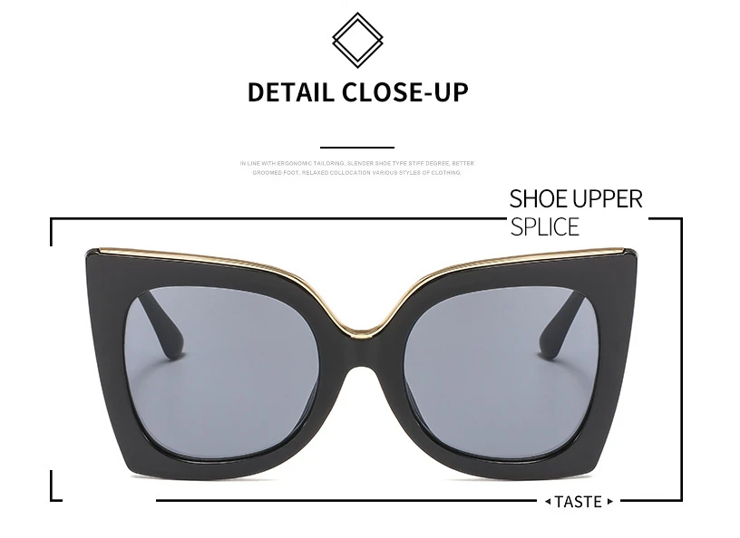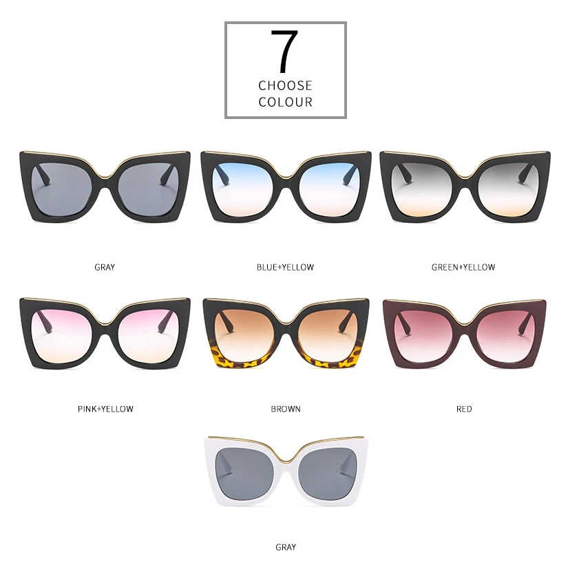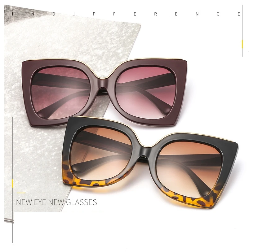 47253 Retro Big Frame Cat Eye Square Sunglasses Women Shades Uv400 Vintage Glasses