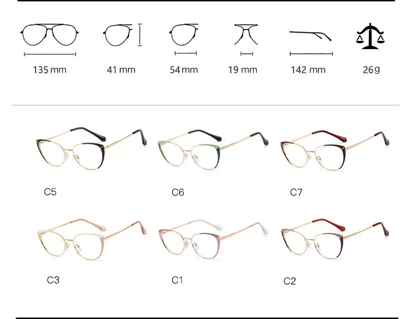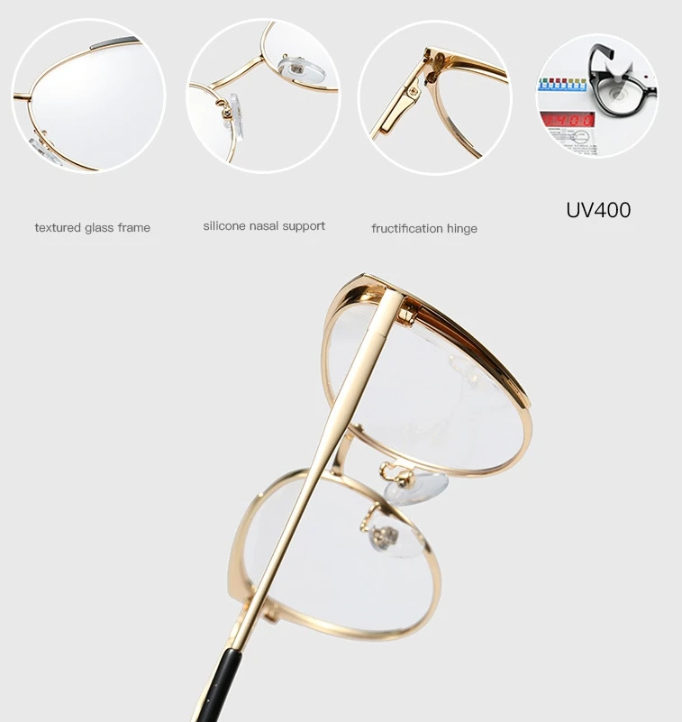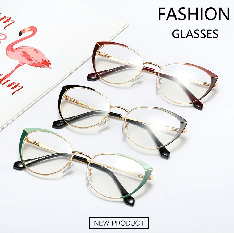 48129 Cat Eye Splice Anti Blue Light Metal Glasses Frames Women Optical Computer Glasses