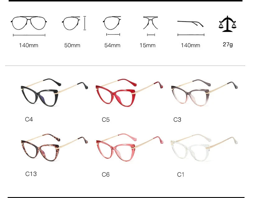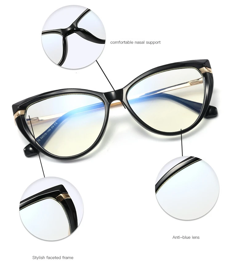 48254 Cat Eye Anti Blue Glasses Frames Women Optical Computer Glasses