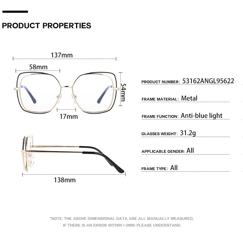 53162 Blue Light Blocking Glasses Women Vintage Optical Eyeglass Computer Frame Gaming Eye Glasses
