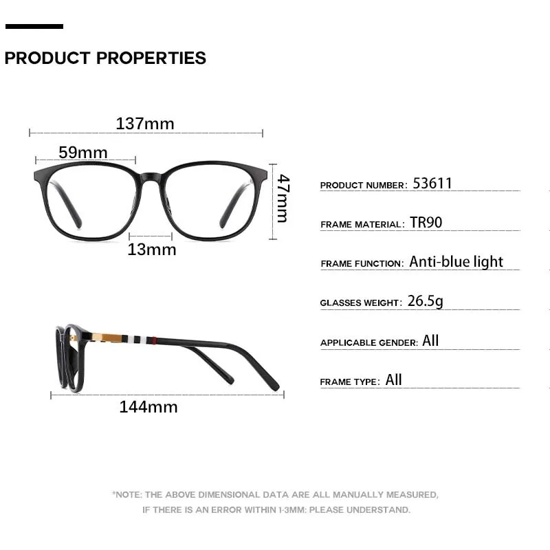 53611 TR90 Square Stripe Legs Brand Glasses Frames Anti Blue Light Optical Women Computer Eyeglasses