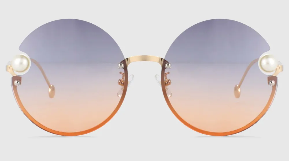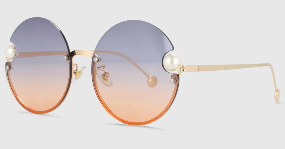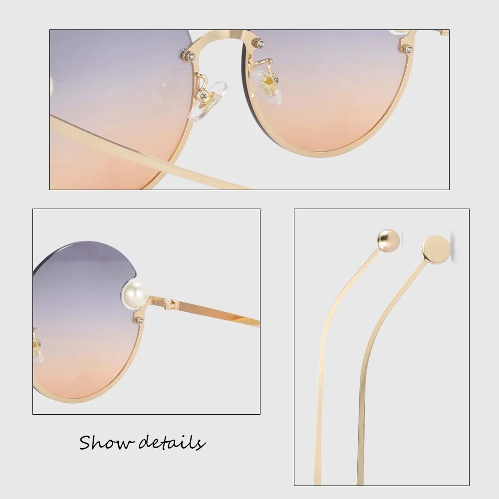 54016 Half Frame Round Sunglasses Pearl Women Shades Uv400 Vintage Glasses