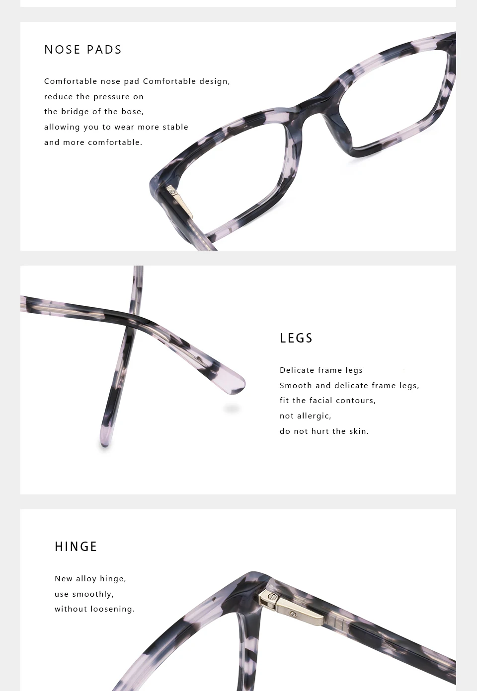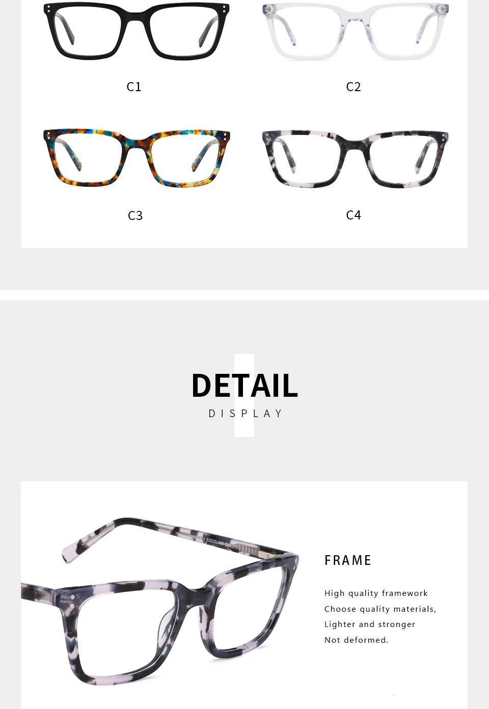 Acetate Women's Glasses Frame Men's Transparent Eyeglasses Optical Myopia Fashion Spectacle Frame Glasses Without Degree