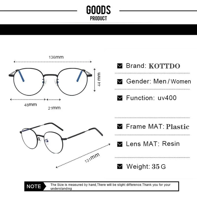 Anti-blue Light Eyeglasses Metal Frame Round Women Vintage Optics Glasses Men Myopia Computer Eye Glasses 2020