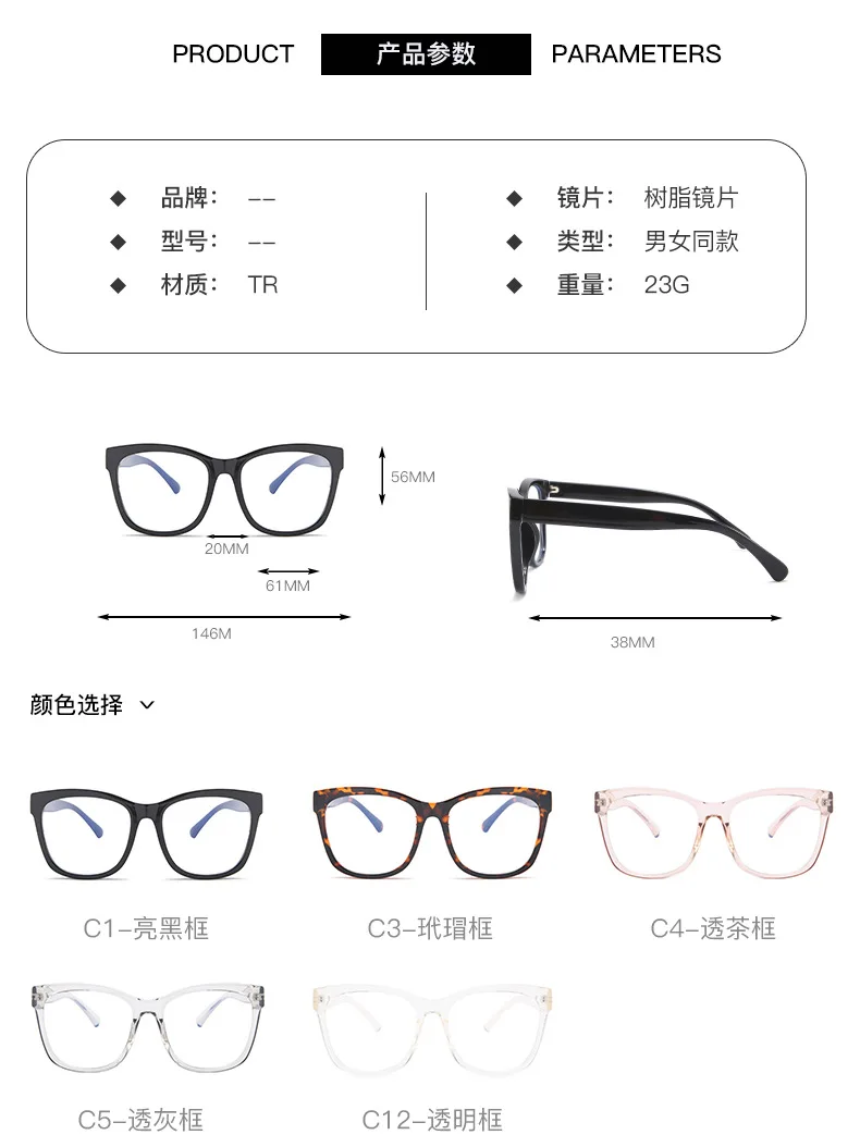 Anti-blue Square Optical Frames Women Men Eyeglasses Myopia Glasses Frames TR90 Retro Clear Prescription Frame Lady