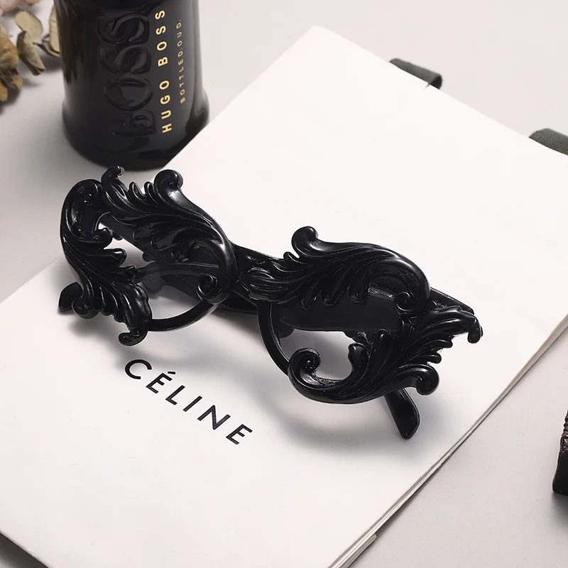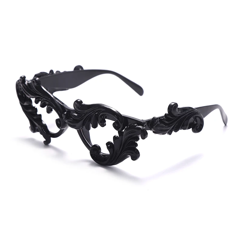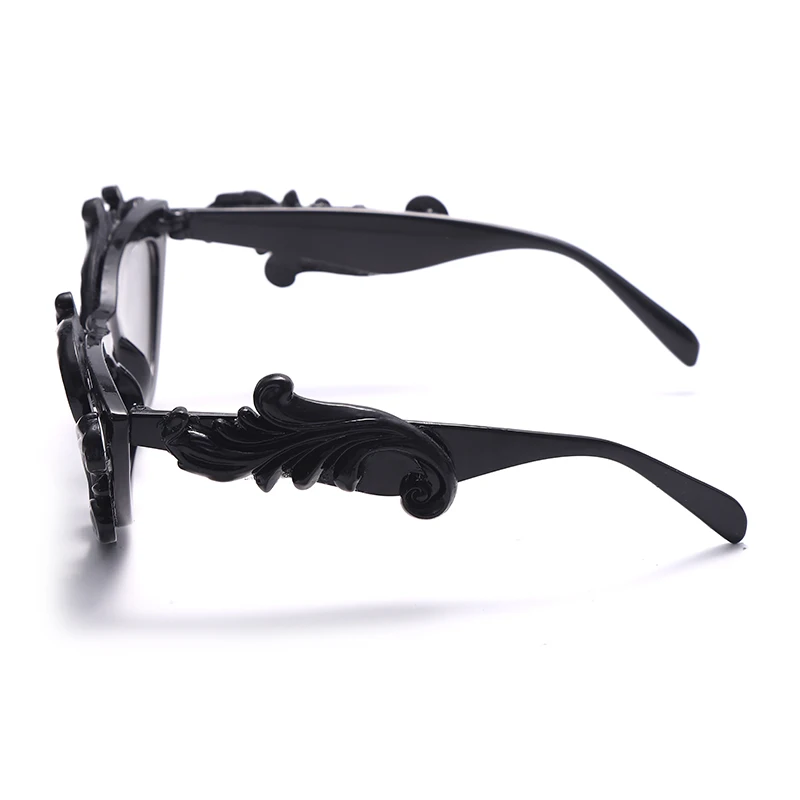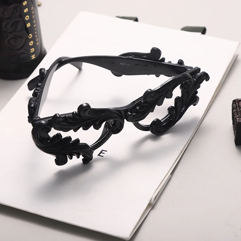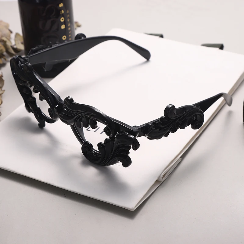 Baroque Sunglass Floral Frames Women Cat Eye Black Shades Clear Lens Handmade Ladies Eyewear