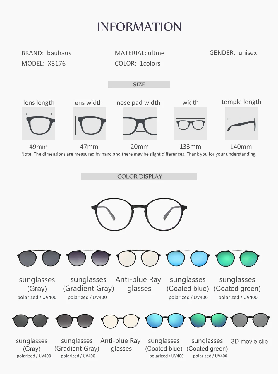 Bauhaus Magnetic Sunglasses Polarized Sunglasses Myopia glasses frame five color Optical ULTEM Eyewear