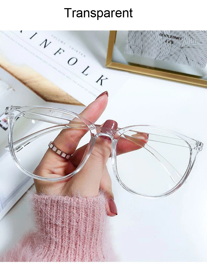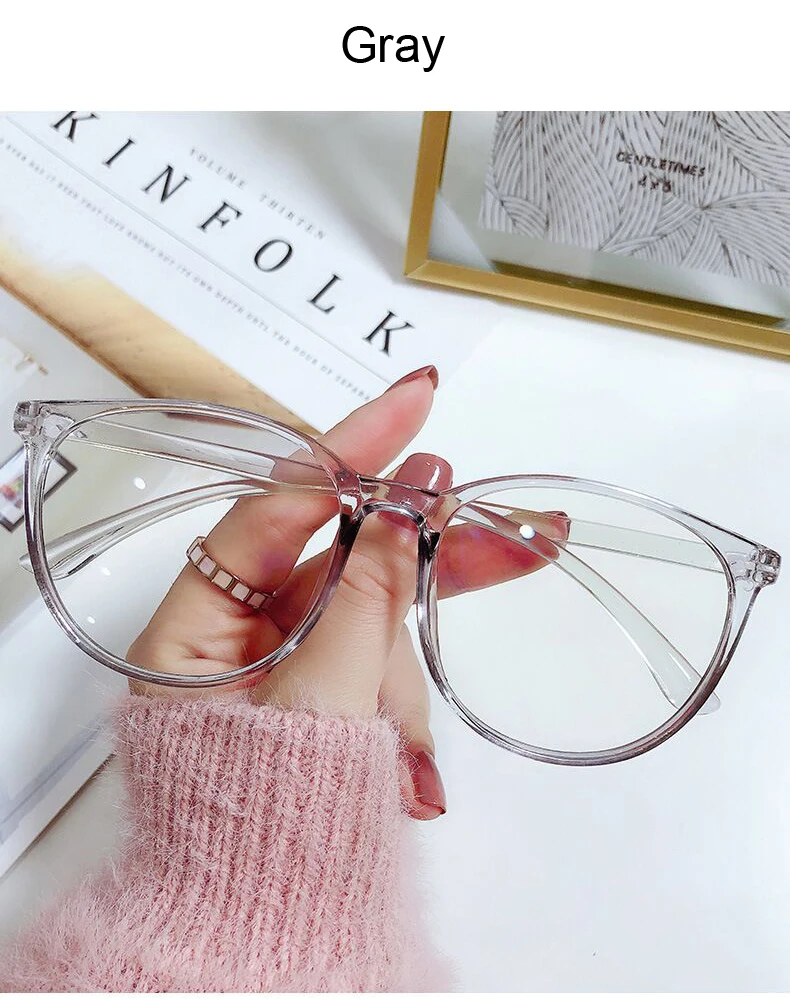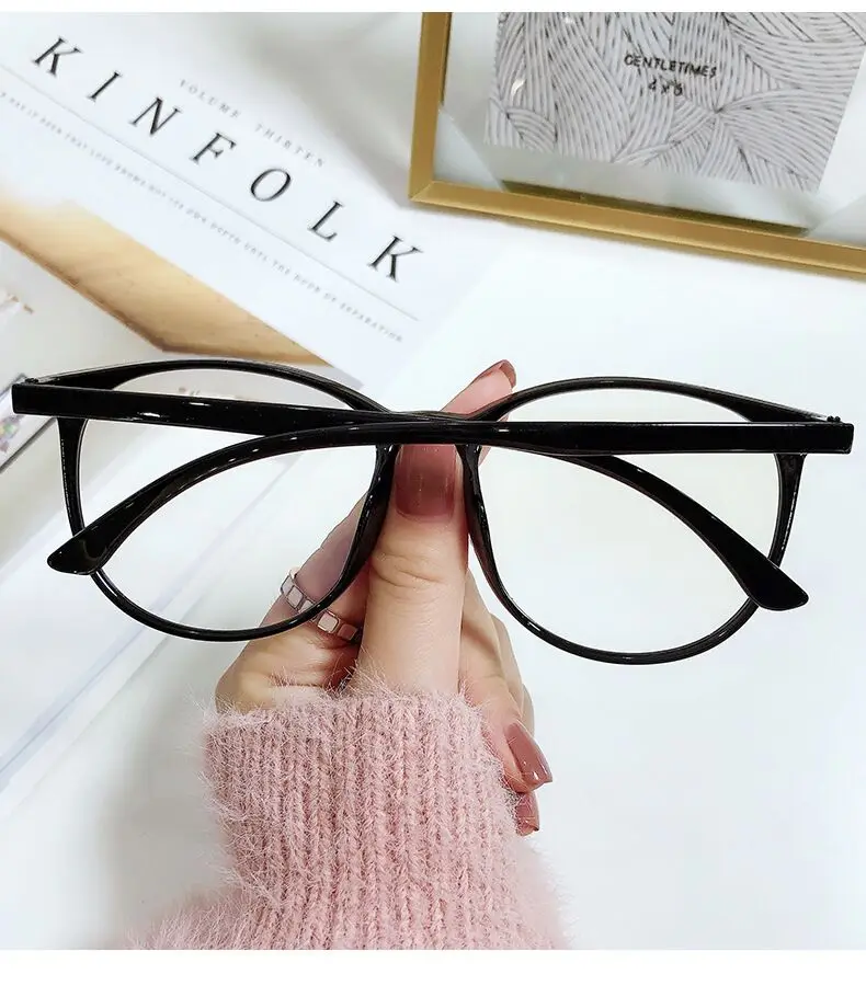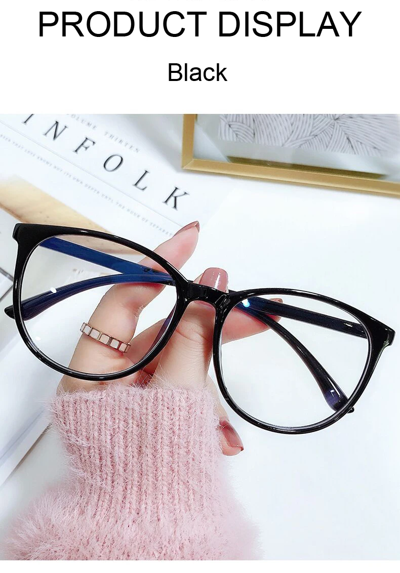 Black Cat Eye Glasses Frame Women Anti Blue Light Round Eyewear Transparent Clear Lens Spectacle Big Frame Eyeglasses