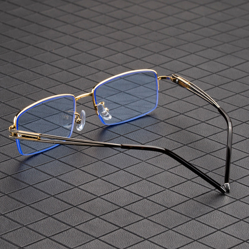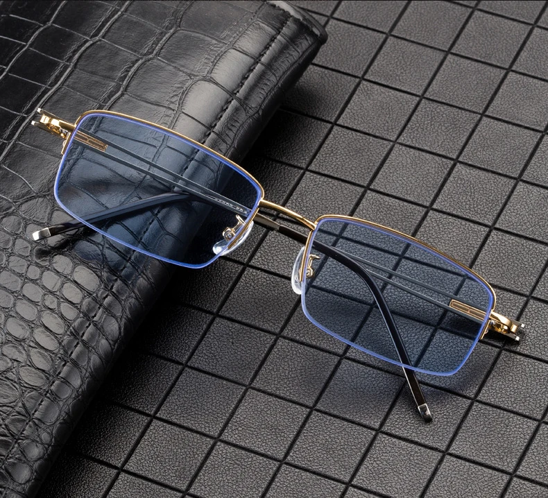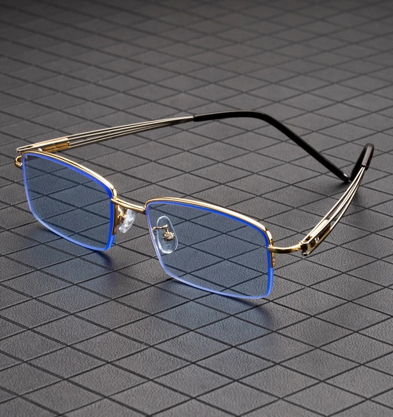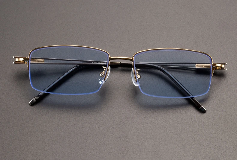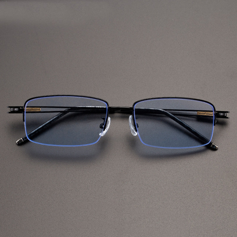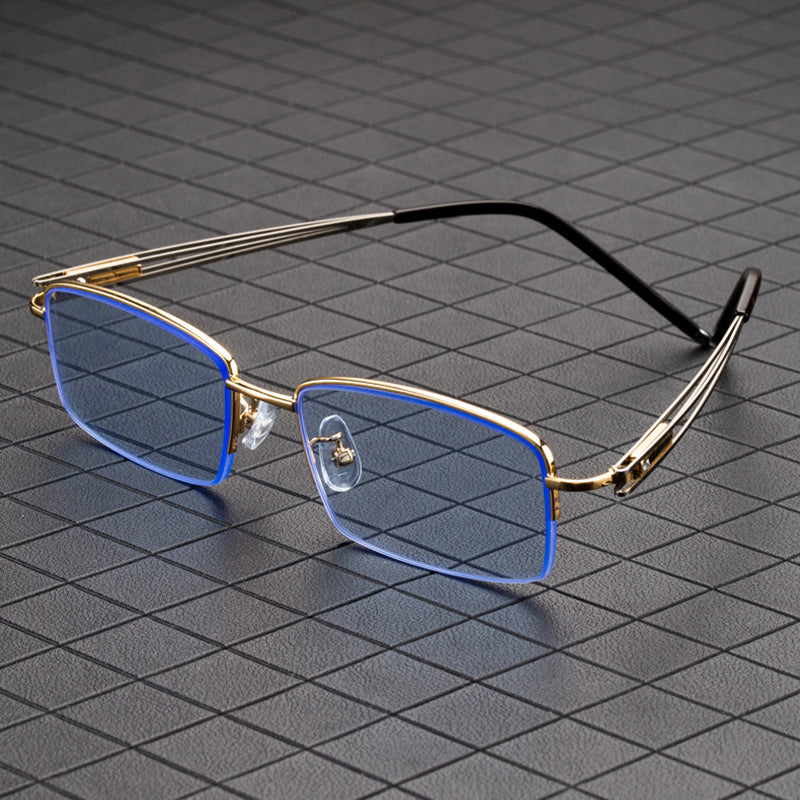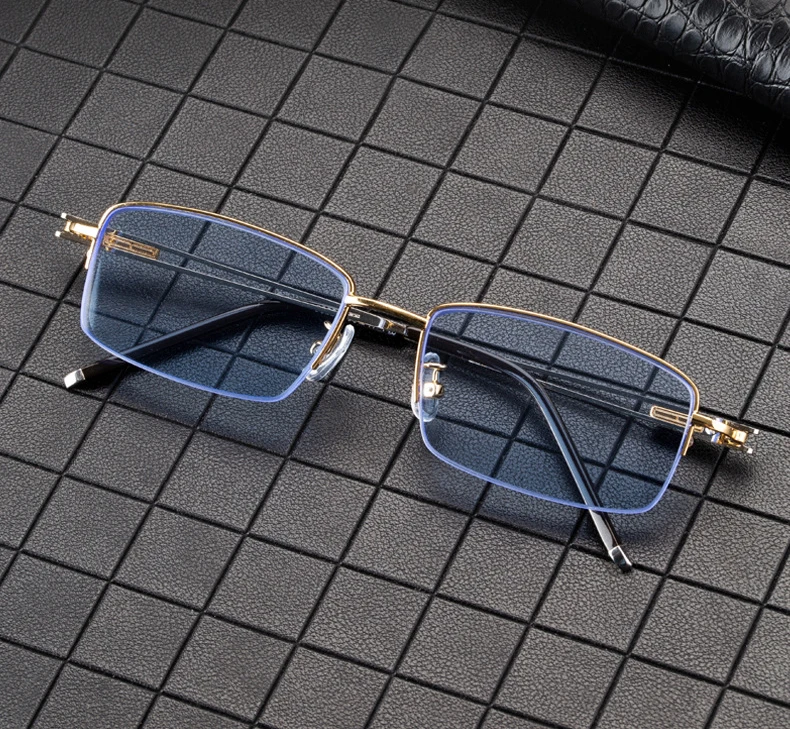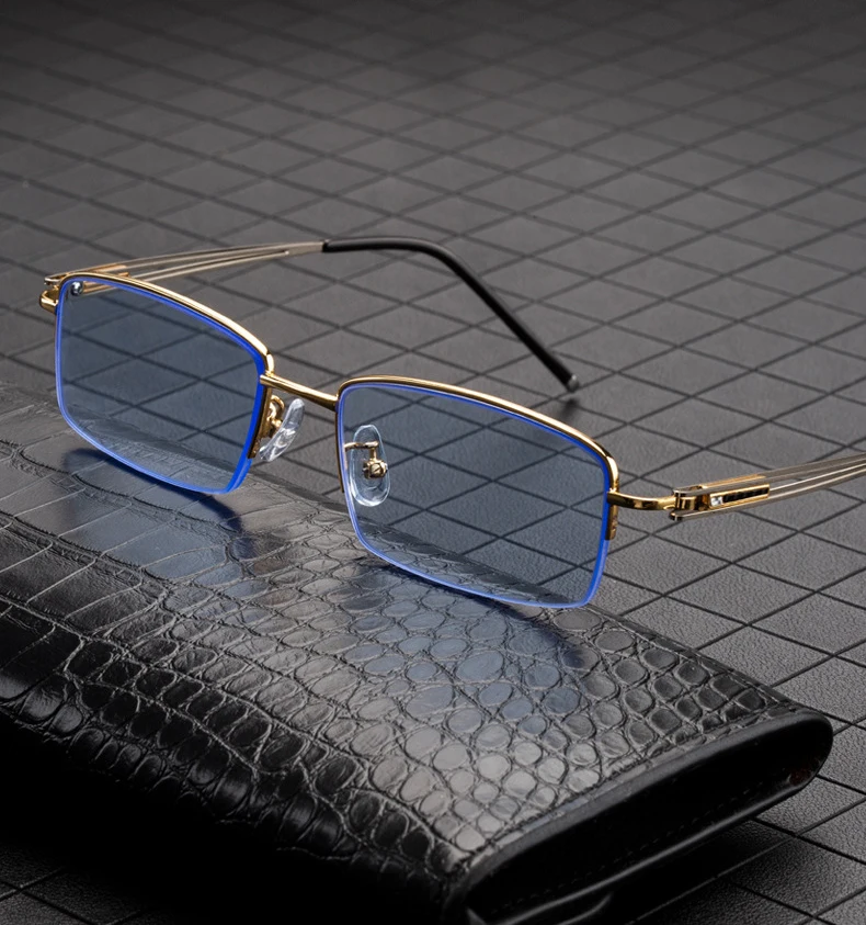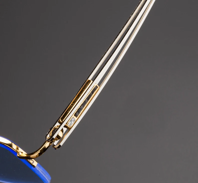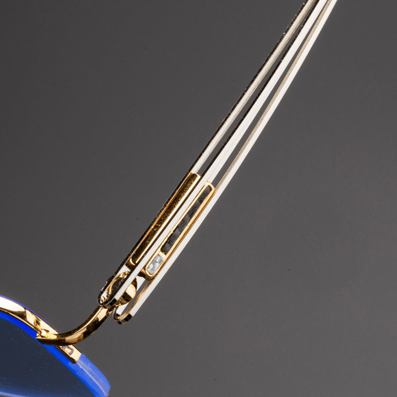 Blue Stone Sunglasses Male Natural Crystal Glass Sun Glasses For Men Woman Metal Half Frame Anti Scratch