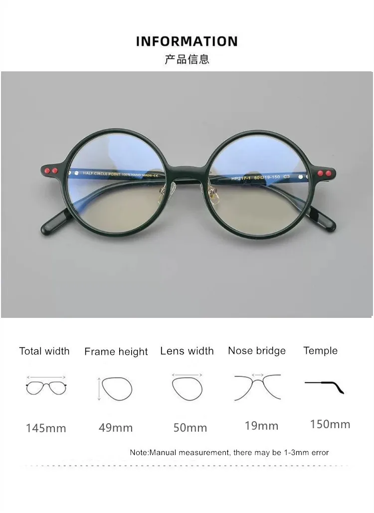 Brand Designer Acetate Glasses Frame Men Large Size Retro Round Handmade Eyeglasses Women Myopia Spectacles Eyewear