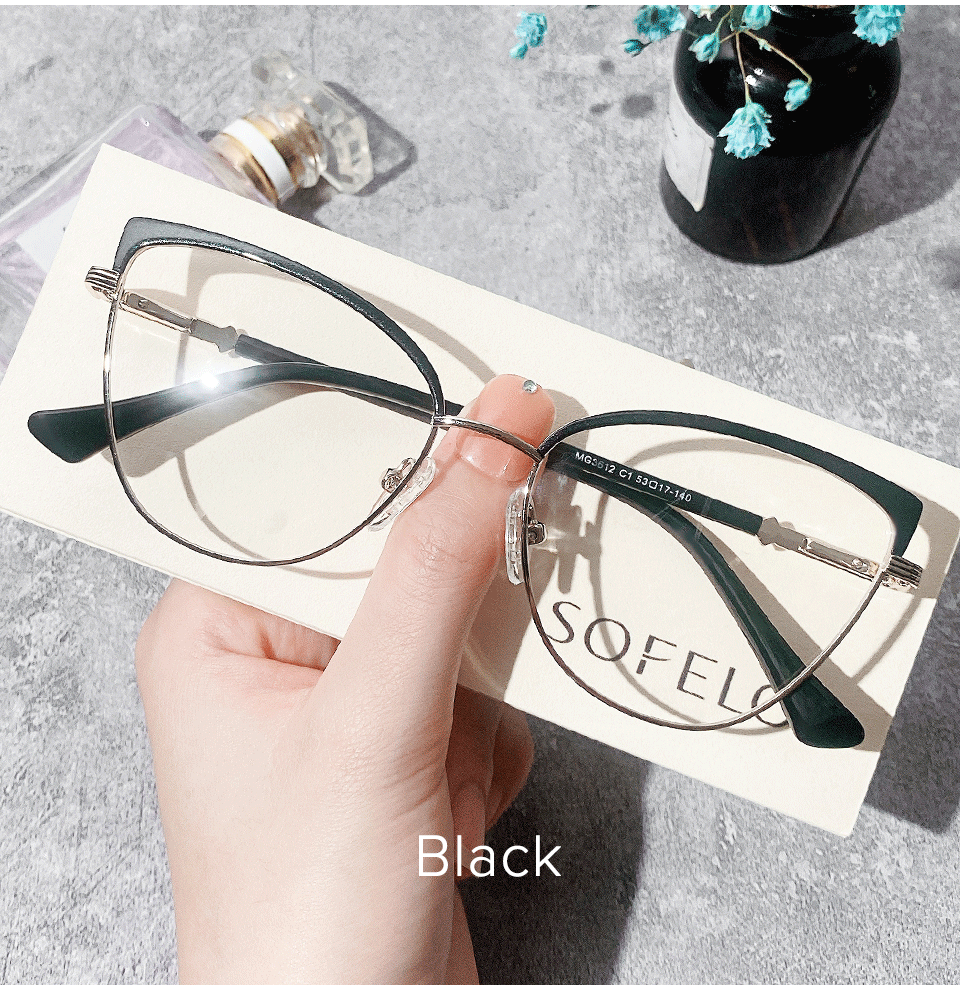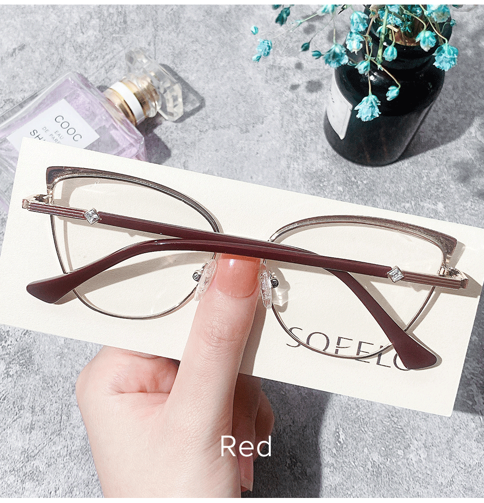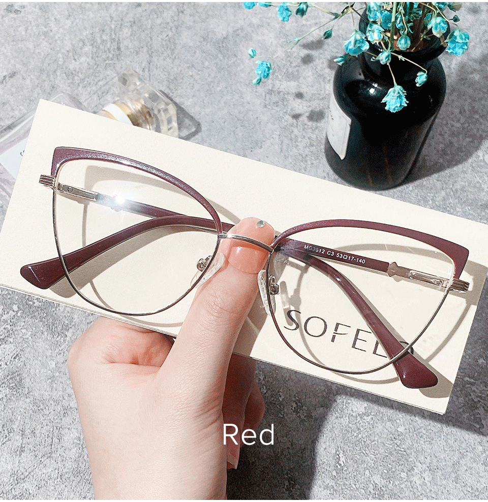 Cat Eye Myopia Glasses Frame Women Optical Prescription Eyeglasses Frame Ladies Red Stainless Steel Spectacles 2023