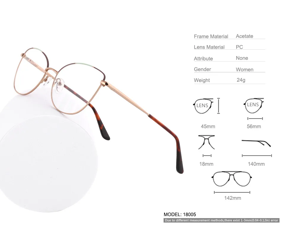 Cat Eye Optical Prescription Glasses Frame For Women Spectacles Frames For Ladies Fake Decorative Eyewear Female Eyeglass