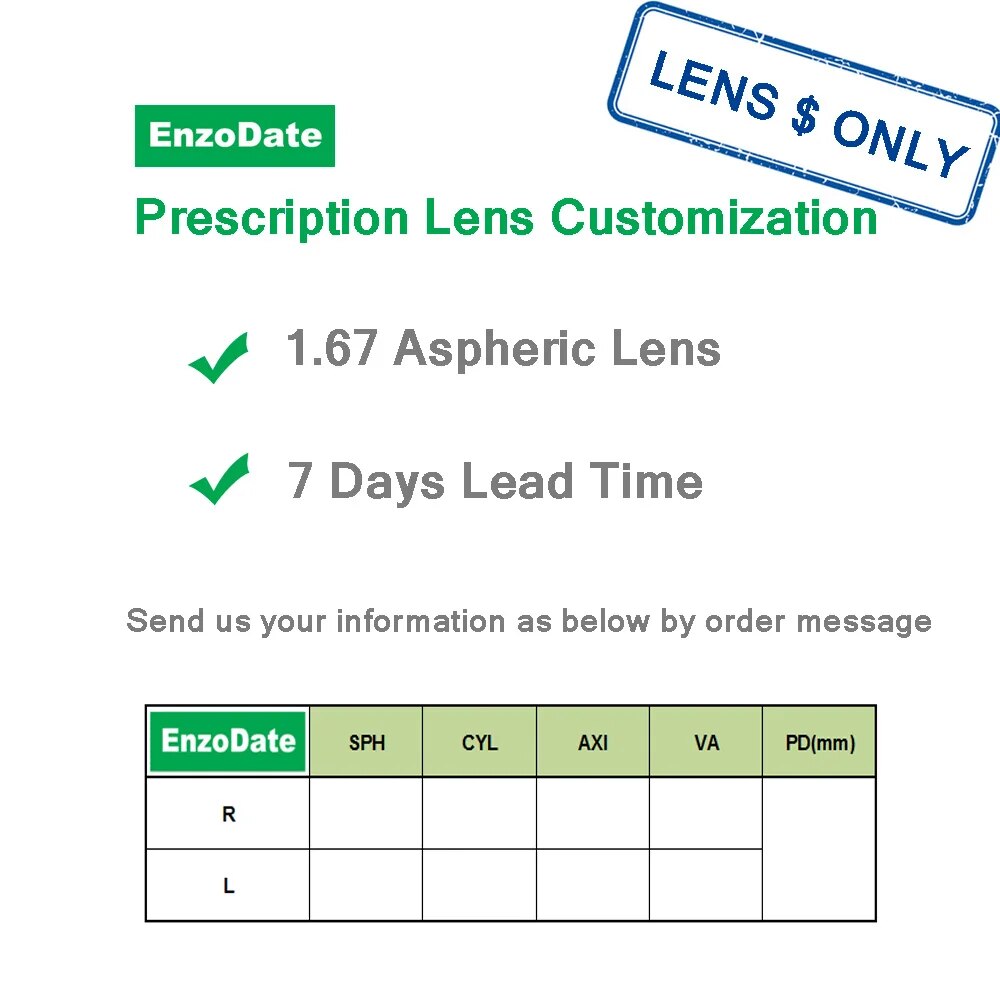 Prescription Lens : -Rx / +Rx / Astigmatism Lenses Customization