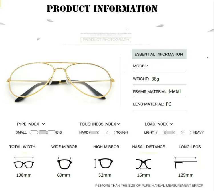Classic Clear Glasses Gold Frame Vintage Sunglass Women Men Optical Aviation Eyeglasses Transparent Clear Oculos De Grau