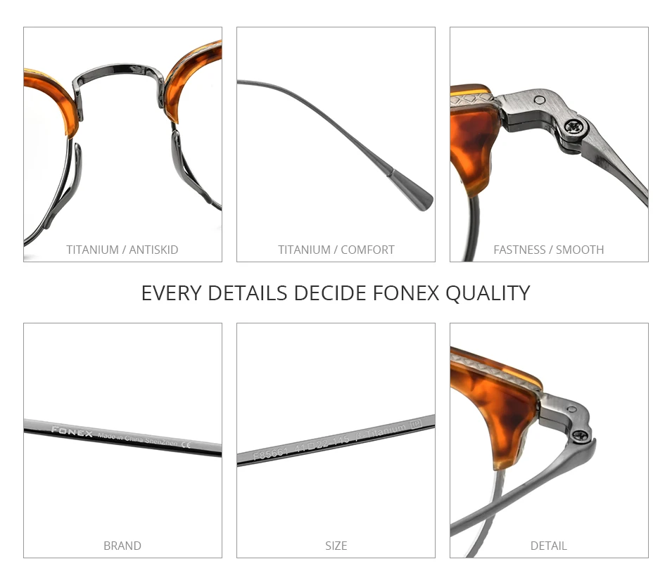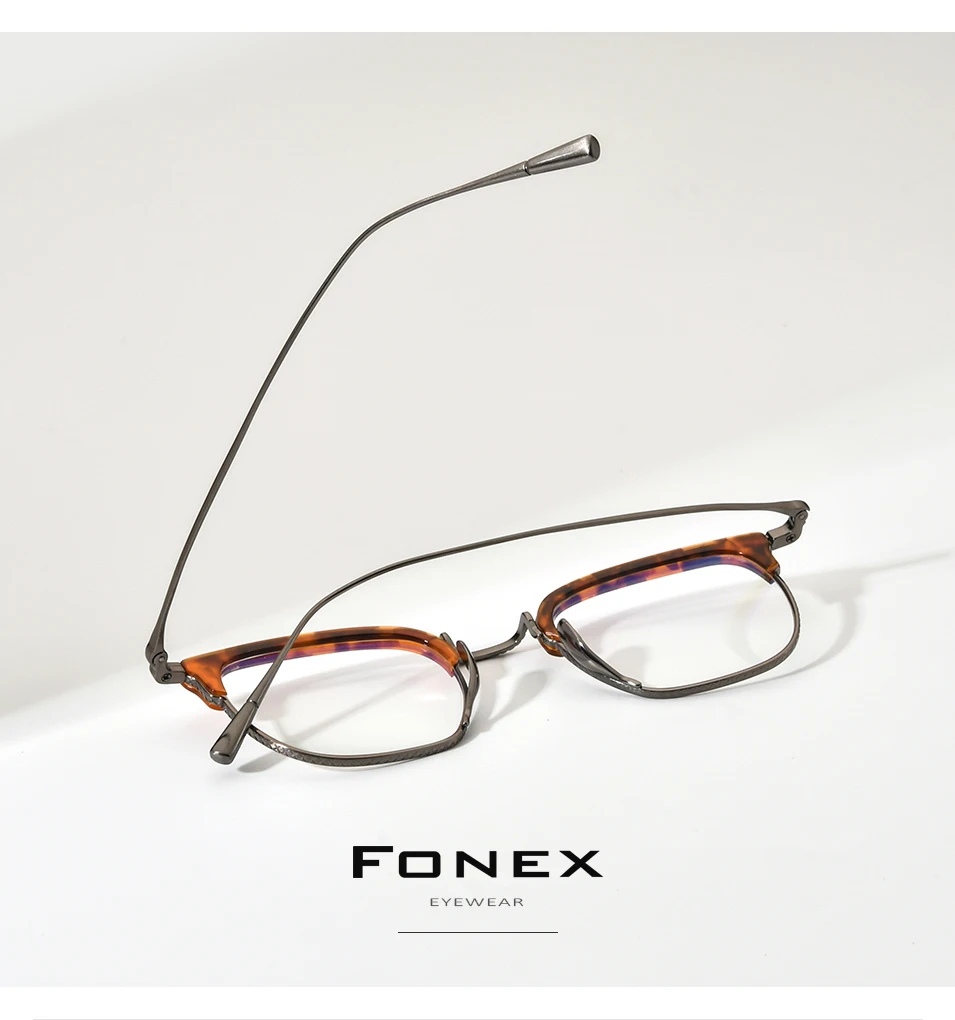 FONEX Acetate Titanium Eyeglasses Frame Men Retro Square Prescription Glasses Women 2023 Vintage Myopia Optical Eyewear F85661