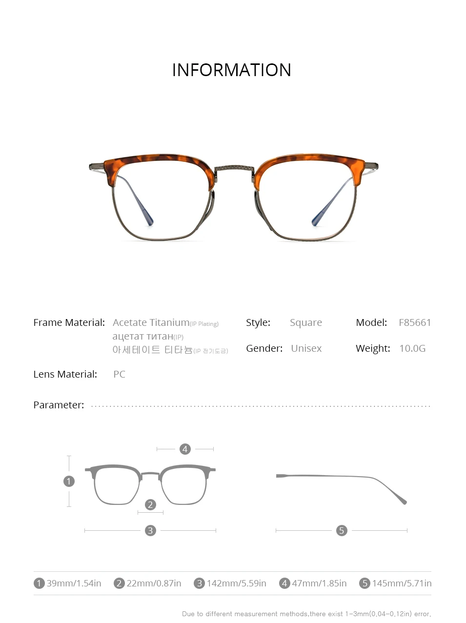 Model Number : F85661 New High Quality Ultralight Korean Japaness Style Eye Glasses
