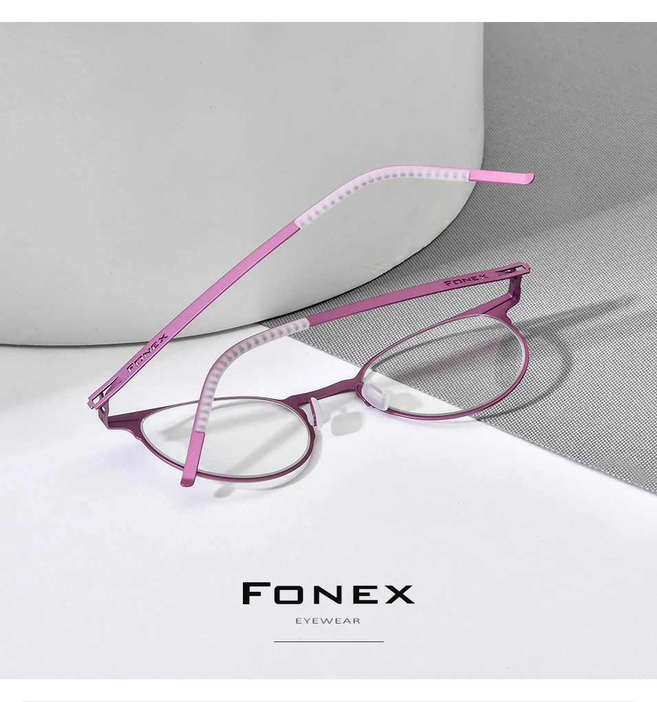 FONEX Alloy Glasses Frame Men Ultralight Women Vintage Round Prescription Eyeglasses 2023 Optical Frame Screwless Eyewear F1023