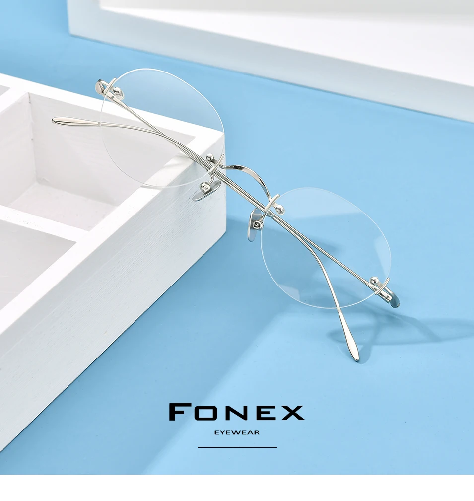 FONEX B Titanium Rimless Glasses Frame Women Prescription Eyeglasses Myopia Optical Frames Men Vintage Retro Oval Eyewear