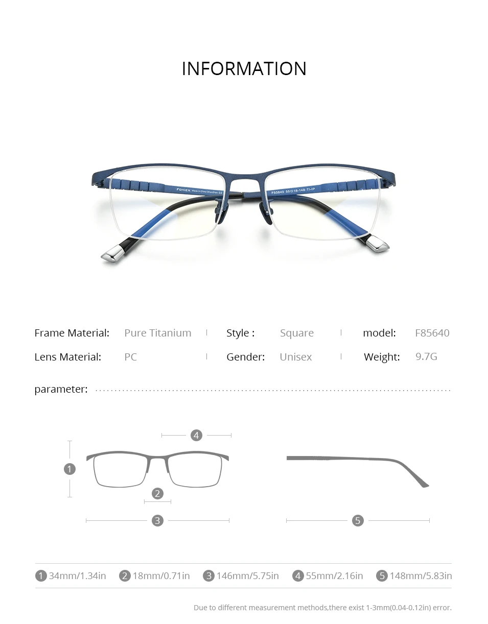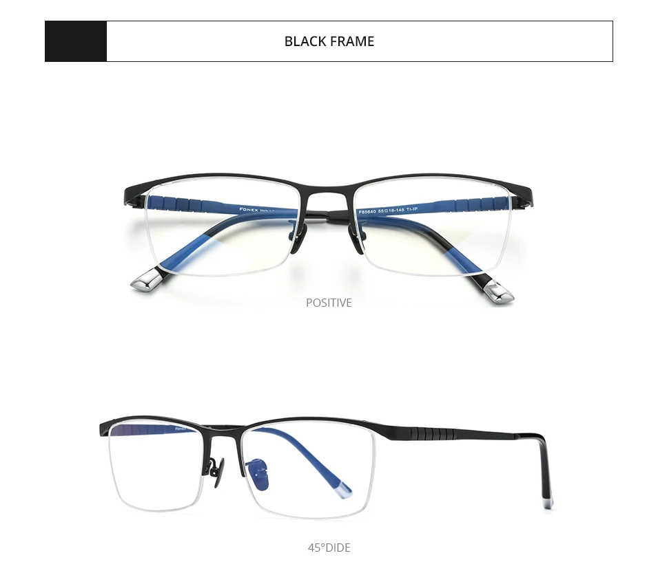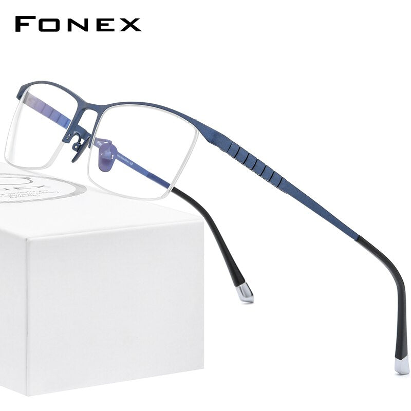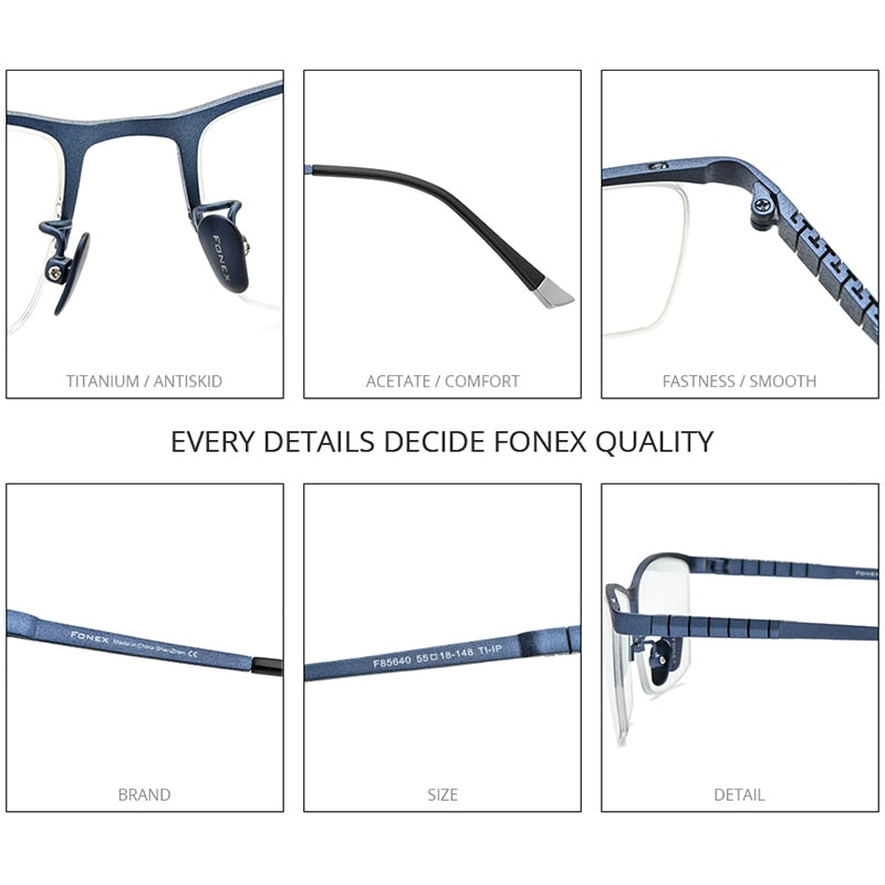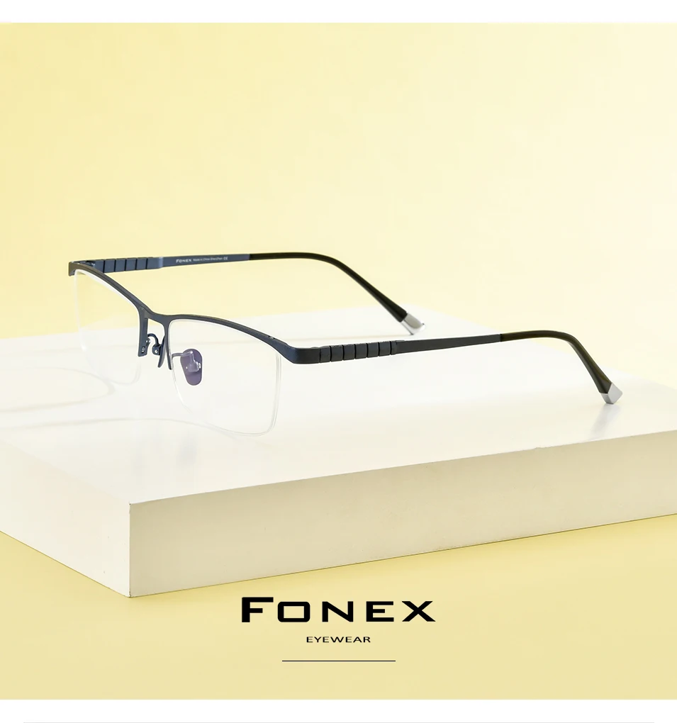 FONEX Pure Titanium Glasses Frame Men Square Eyewear 2023 Male Half Optical Myopia Prescription Eyeglasses Frames 85640