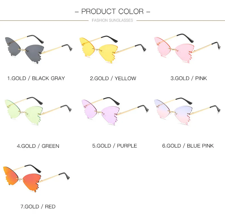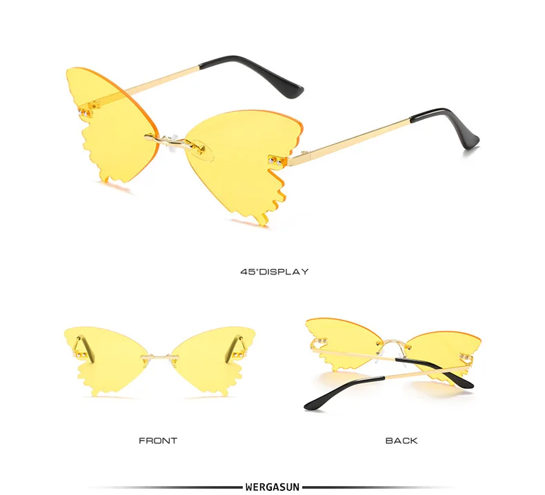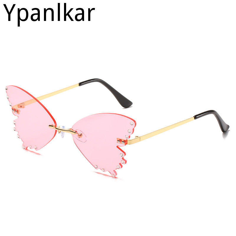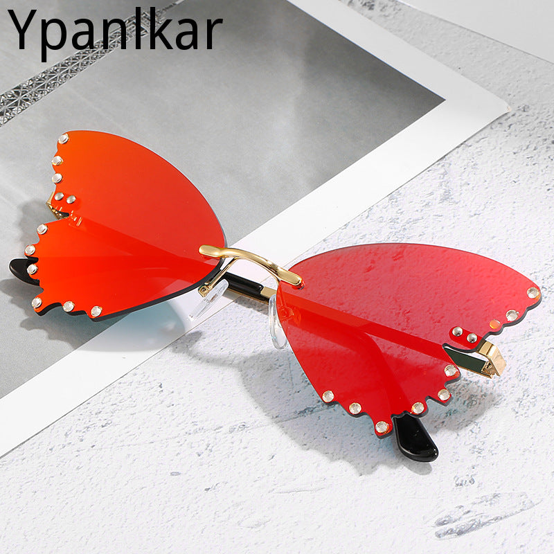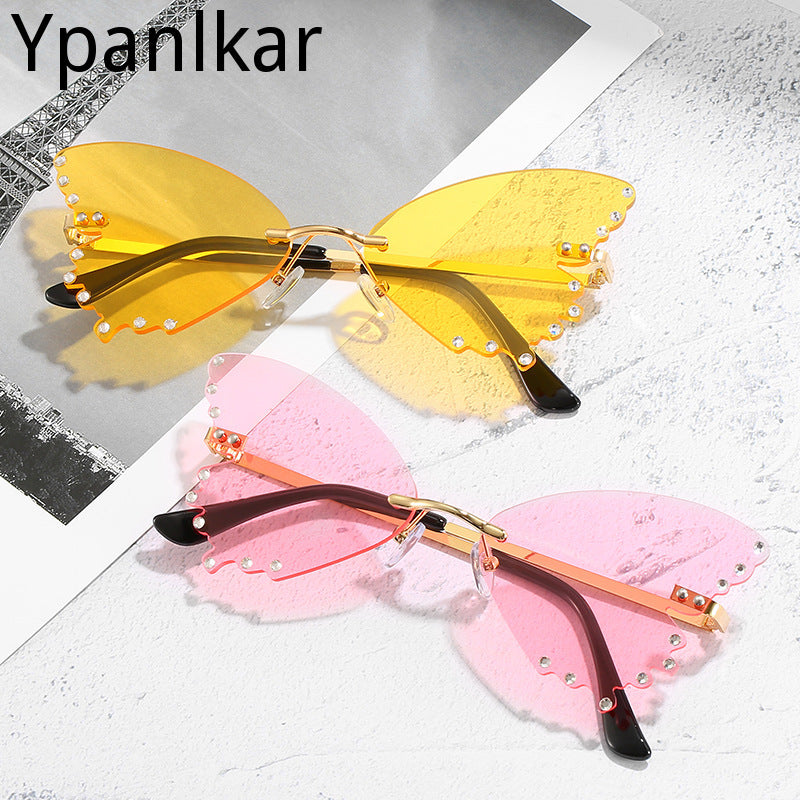 Frameless Butterfly Rhinestone Sunglasses Ladies Steampunk Designer Sunglasses Retro Glasses