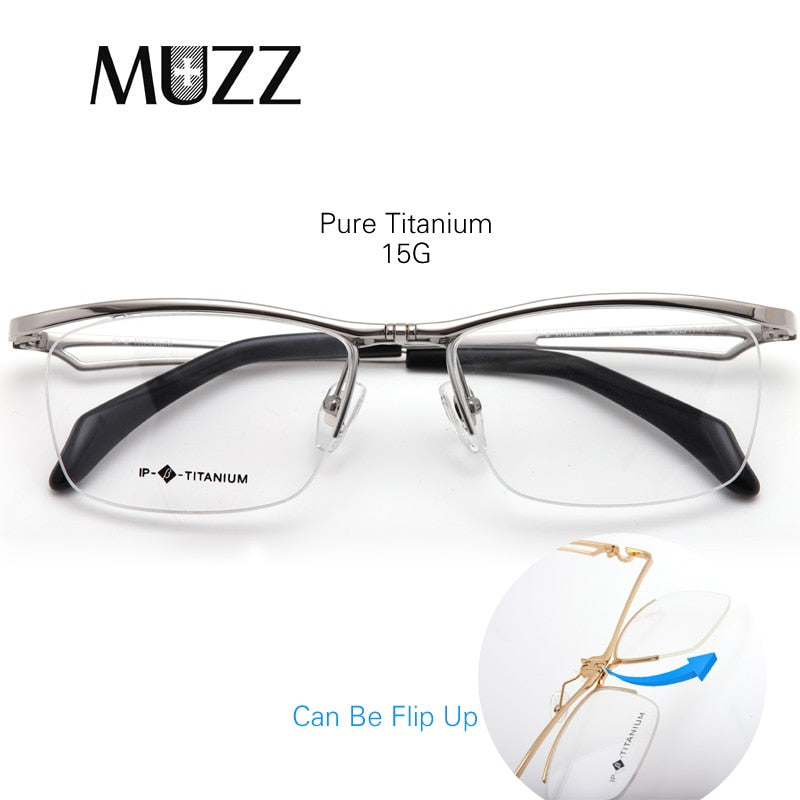 IP Pure Titanium Men Glasses Half Frame Business Square Flip Up Eyeglass Frames Myopia Hyperopia Prescription Eyeglasses Eyewear